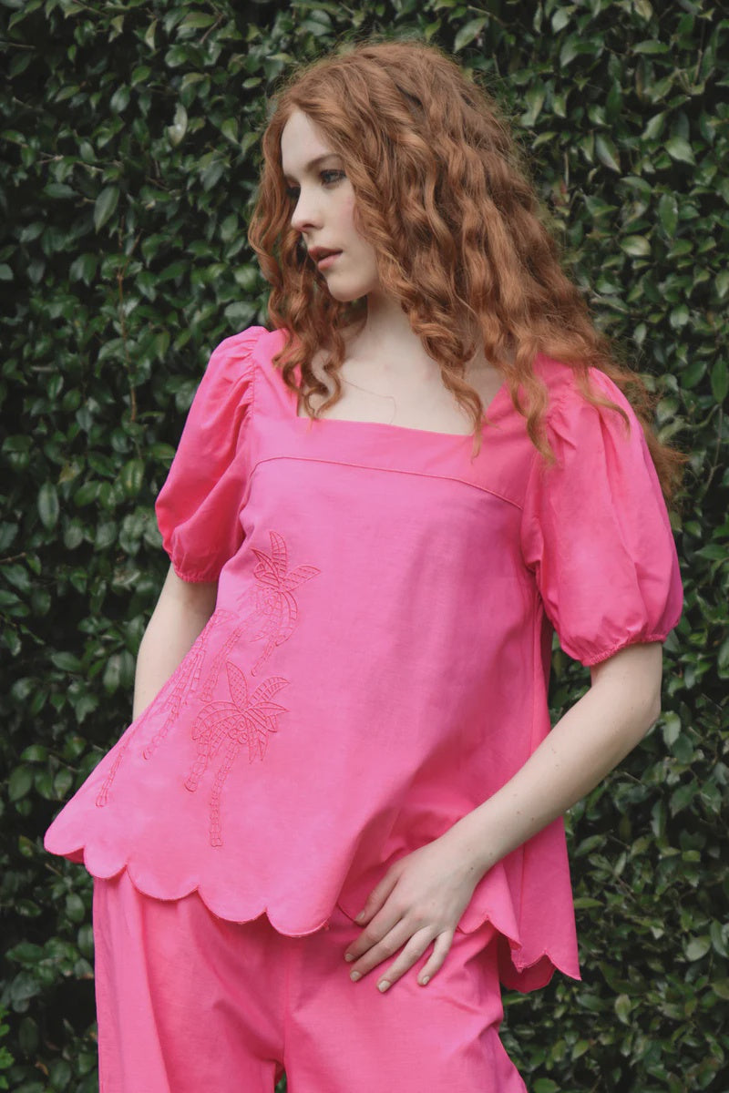 Tropical inspired embroidery and a scalloped hemline adorn the ‘Just Roll with it’ top for an updated take on an everyday top. Crafted in the ‘Clash of the Textures’ linen, cotton blend, this square necked top sports a flattering swing silhouette with charming puff sleeves making it a firm favourite for hot weather wear. Pair with the ‘City Sprints’ pants for a chic co-ord moment.
