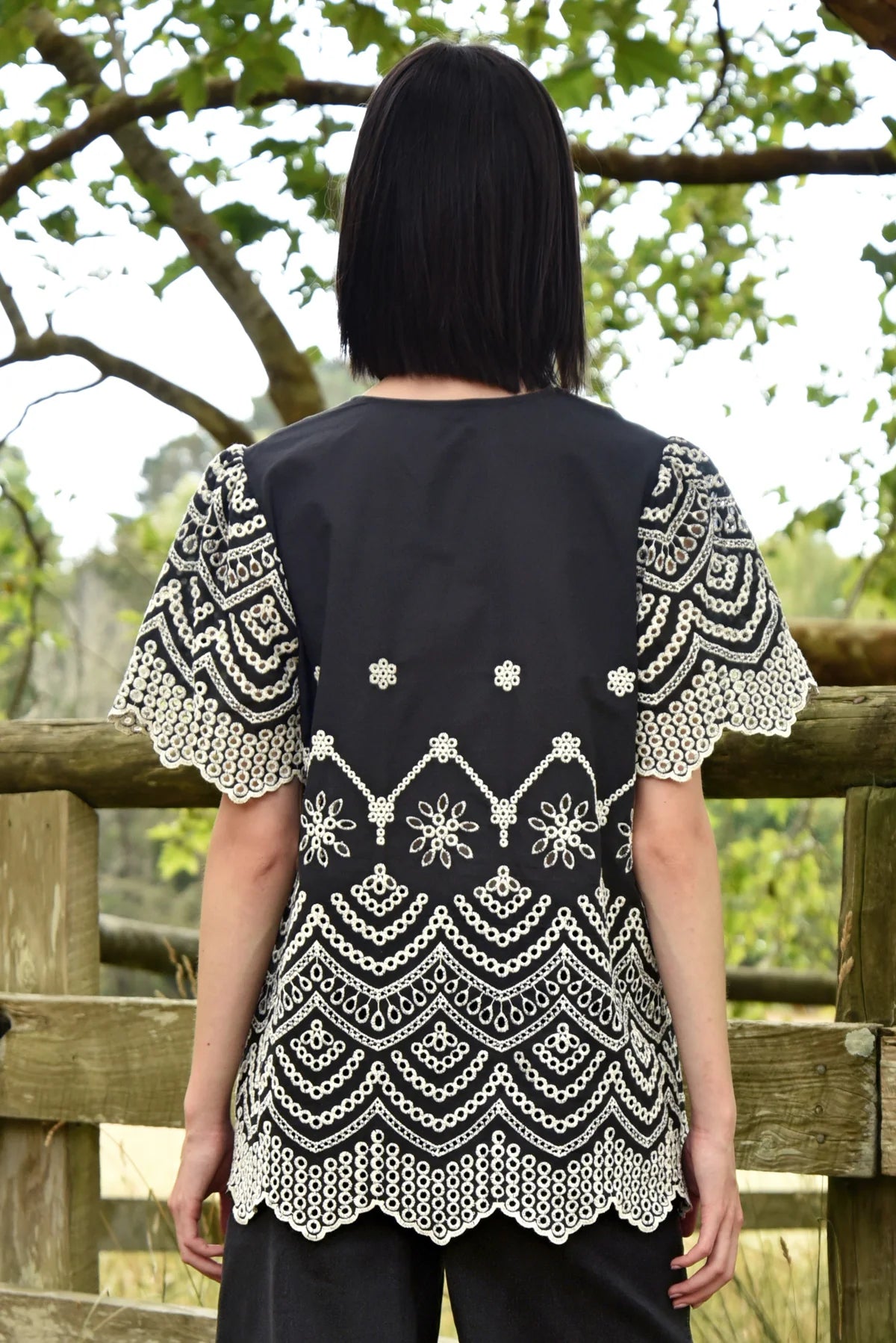 • Broderie anglaise contrast embroidery