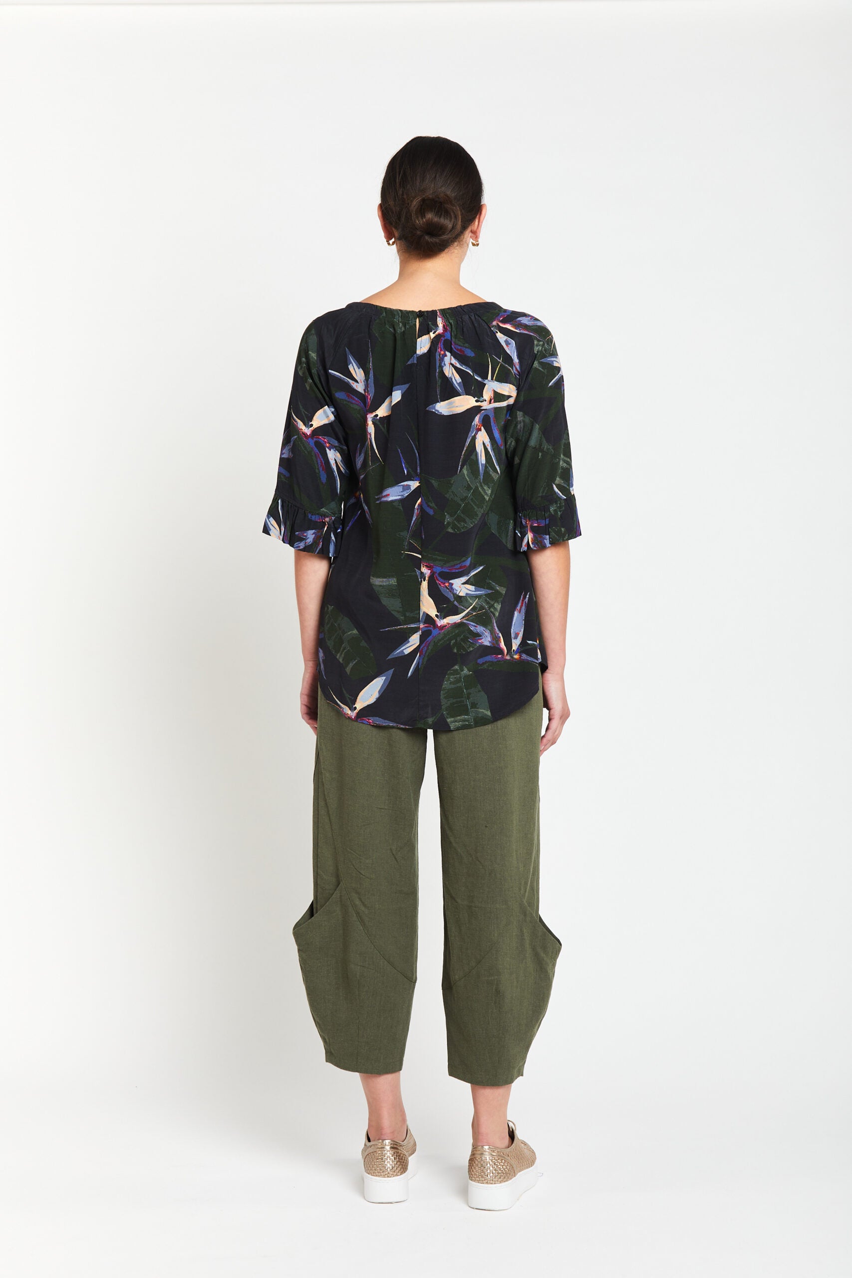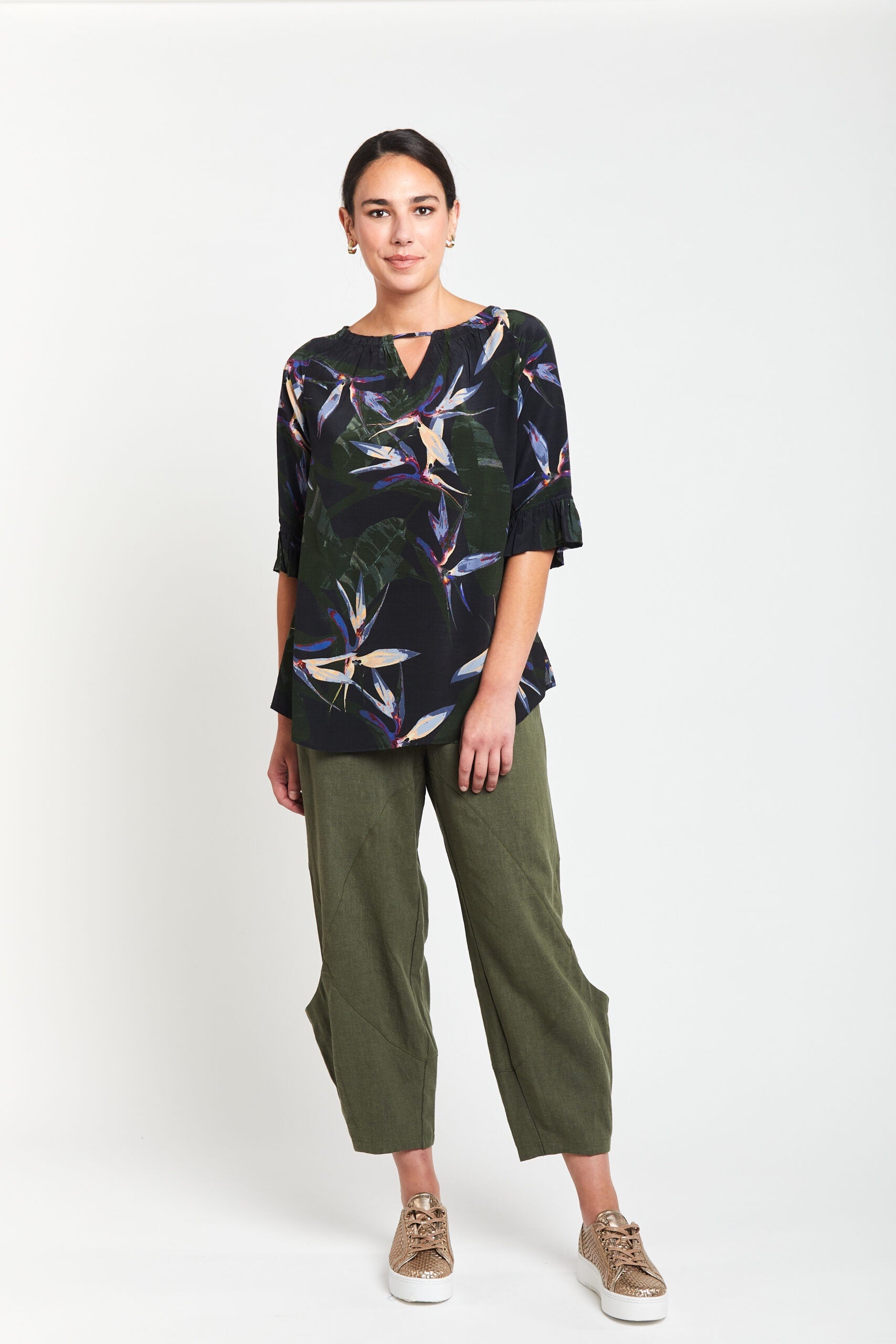 The soft neckline is gently gathered, creating a flattering shape, with a modern keyhole detail for added interest. Crafted from beautiful fluid viscose, selected for its delightful hand feel and drape. This top skims the body with ease, falling into an flattering silhouette. Soft sleeves finished with subtle gentle gathers for a feminine touch and a gently curved hem complete the look, enhancing the fluidity and feminine feel.