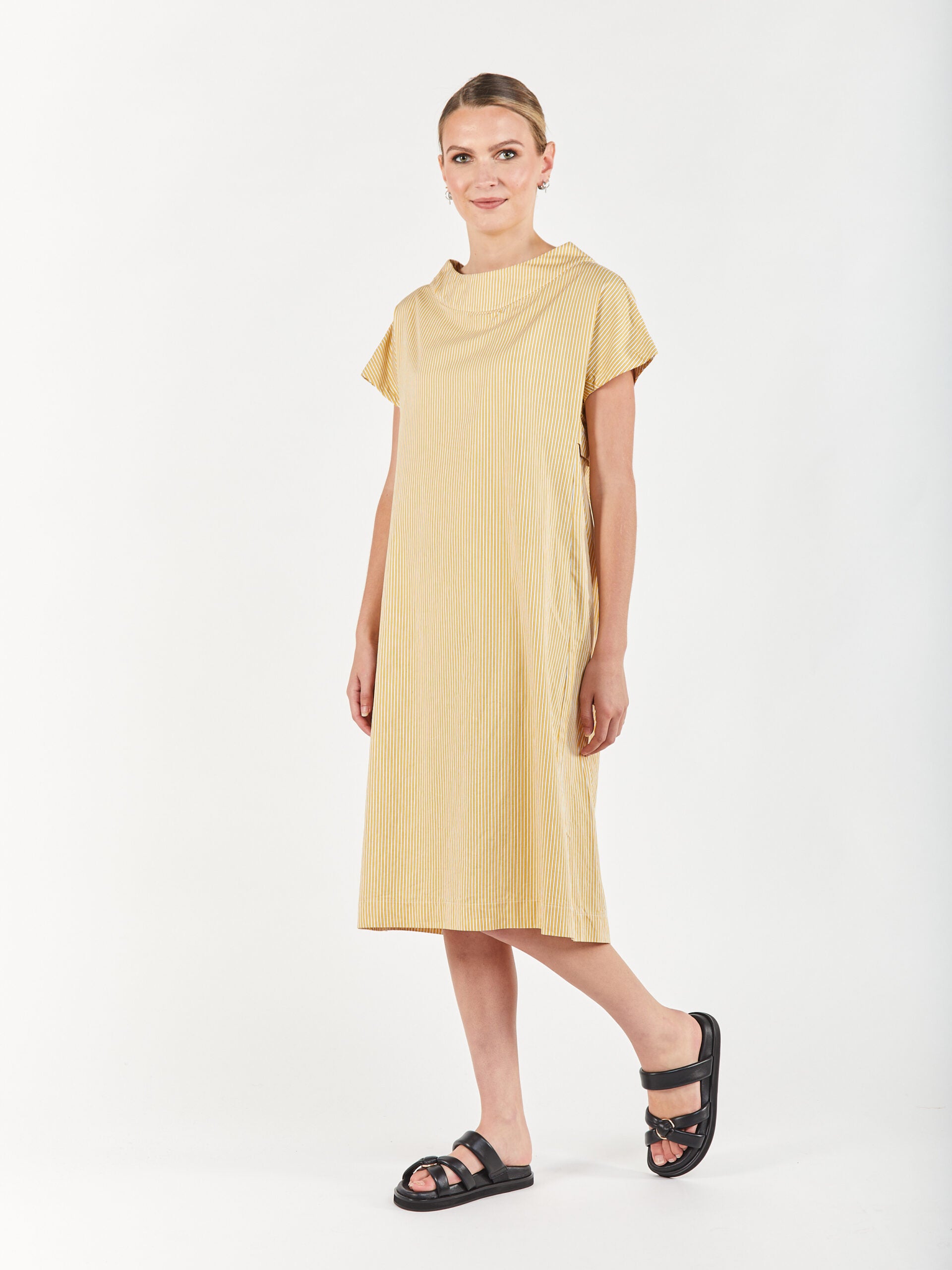 The Starburst reversible dress feels so beautiful against the body, crafted in a soft handle pinstripe cotton, a natural fibre selected for its luxurious hand feel and stunning appearance, an essential Obi pop on and go summer dress.