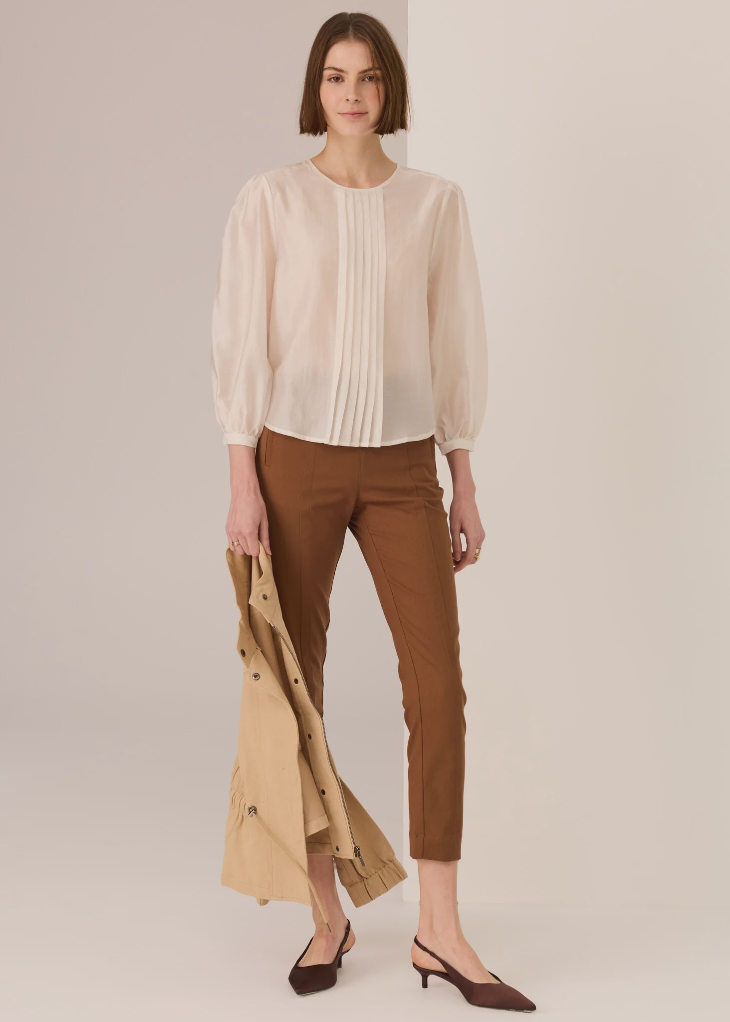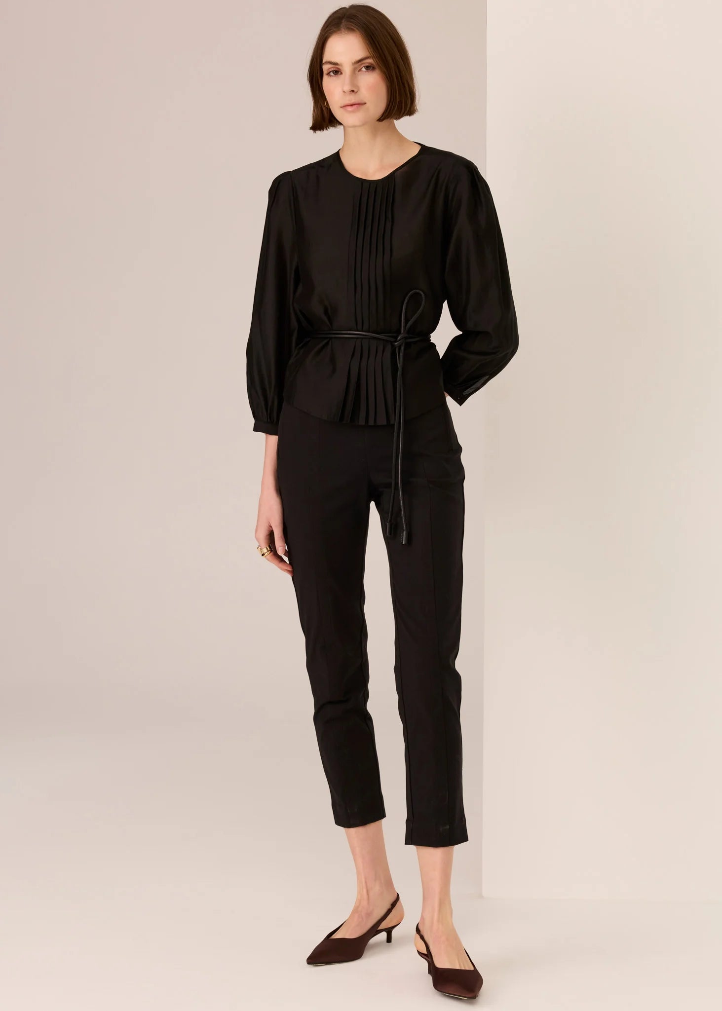 Available in Ivory or Black, the Mae Top is the perfect piece to dress up your denim or wear to the office.