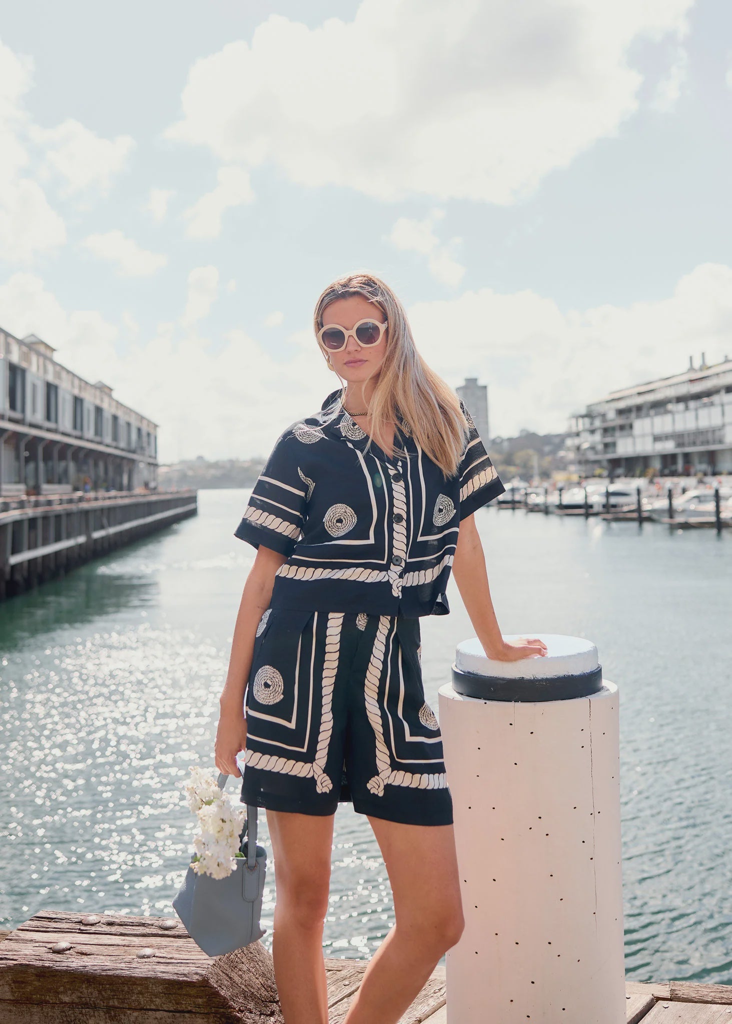 Made from a linen blend featuring our in-house designed Buoy Print, the Tangle Shirt features a scarf style placement print that feels like Summer.