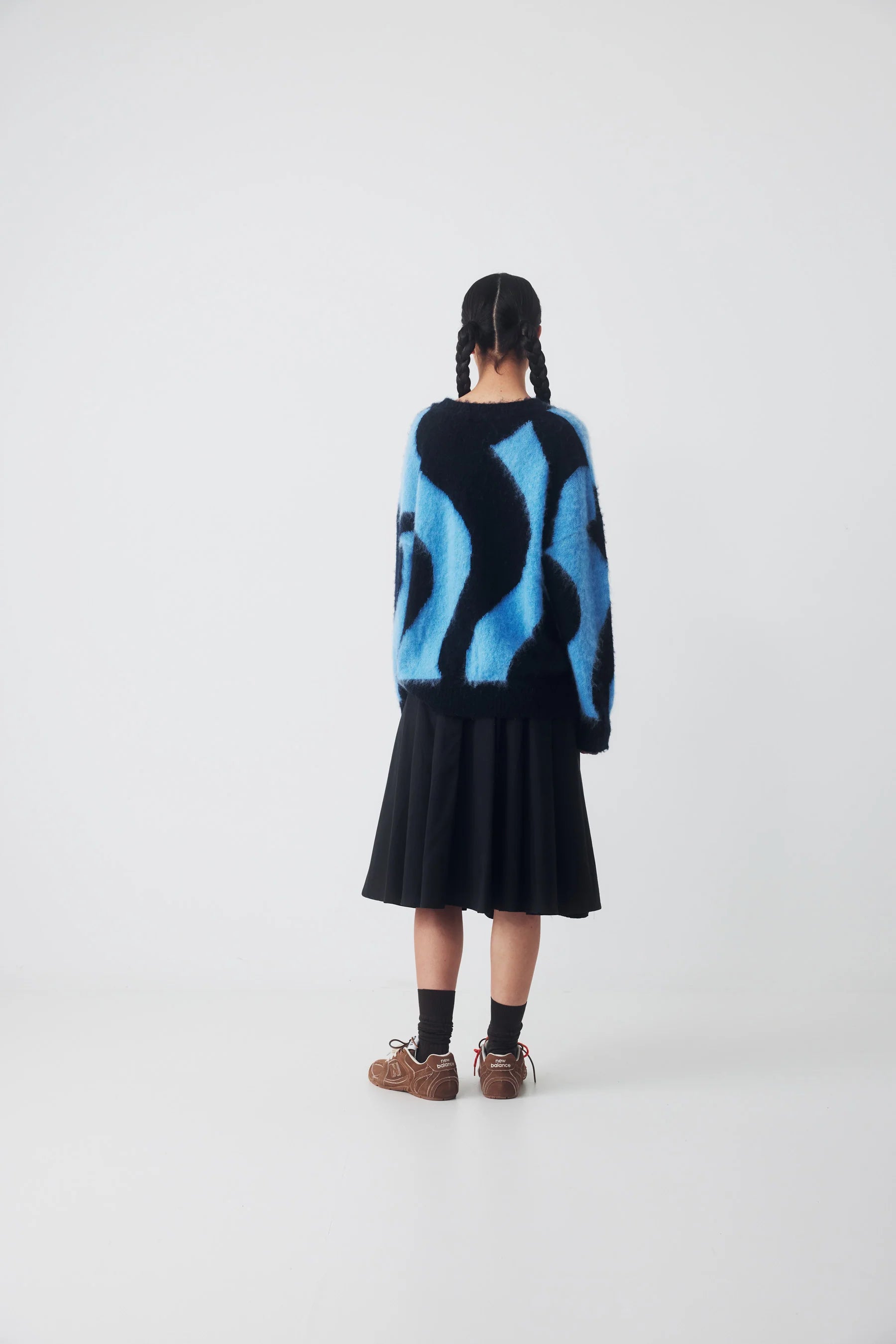 Crafted from luxurious Brushed Merino wool, the Loki Jumper boasts a fluffy texture and striking squiggle stripe design. In dark blue and azure hues, this sweater adds a touch of sophistication and comfort to your wardrobe. Elevate your style with this must-have piece.