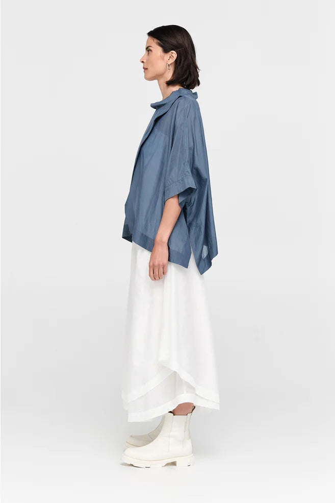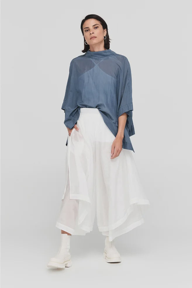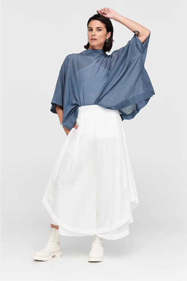 The Vortex Top, this season crafted in a beautiful silk cotton blend, is the kind of piece you’ll reach for when you want effortless style with a twist. Its soft drape and crossover panel create a beautiful, flowing shape with an asymmetrical hem that is flattering on the figure. Designed to be reversible, you can wear the crossover at the front or back for two distinct looks. Pair it with the Long Extension Tank and Vista Pants for an easy, elevated outfit.