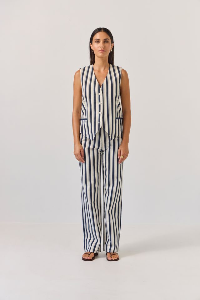 A denim jean style pant in a seriously fun lightweight denim stripe.