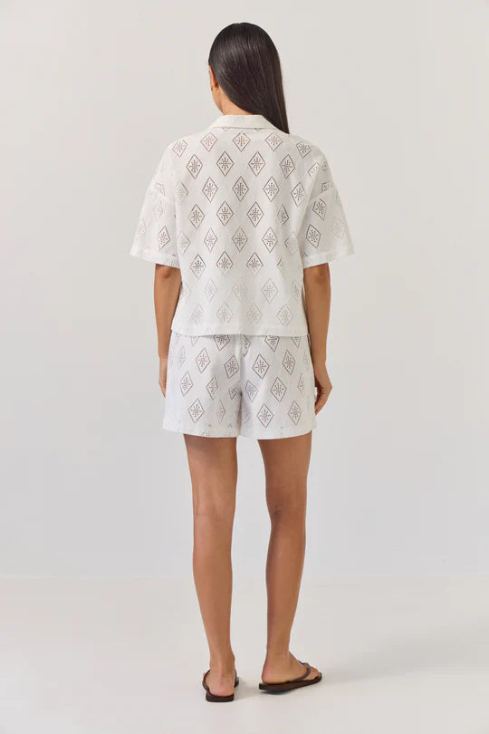 The relaxed revere collar top in a brand new cotton cut-out embroidery. Wear with the matching Coast Pants or Umpire Shorts, or simply back with denim for a fresh summer look.