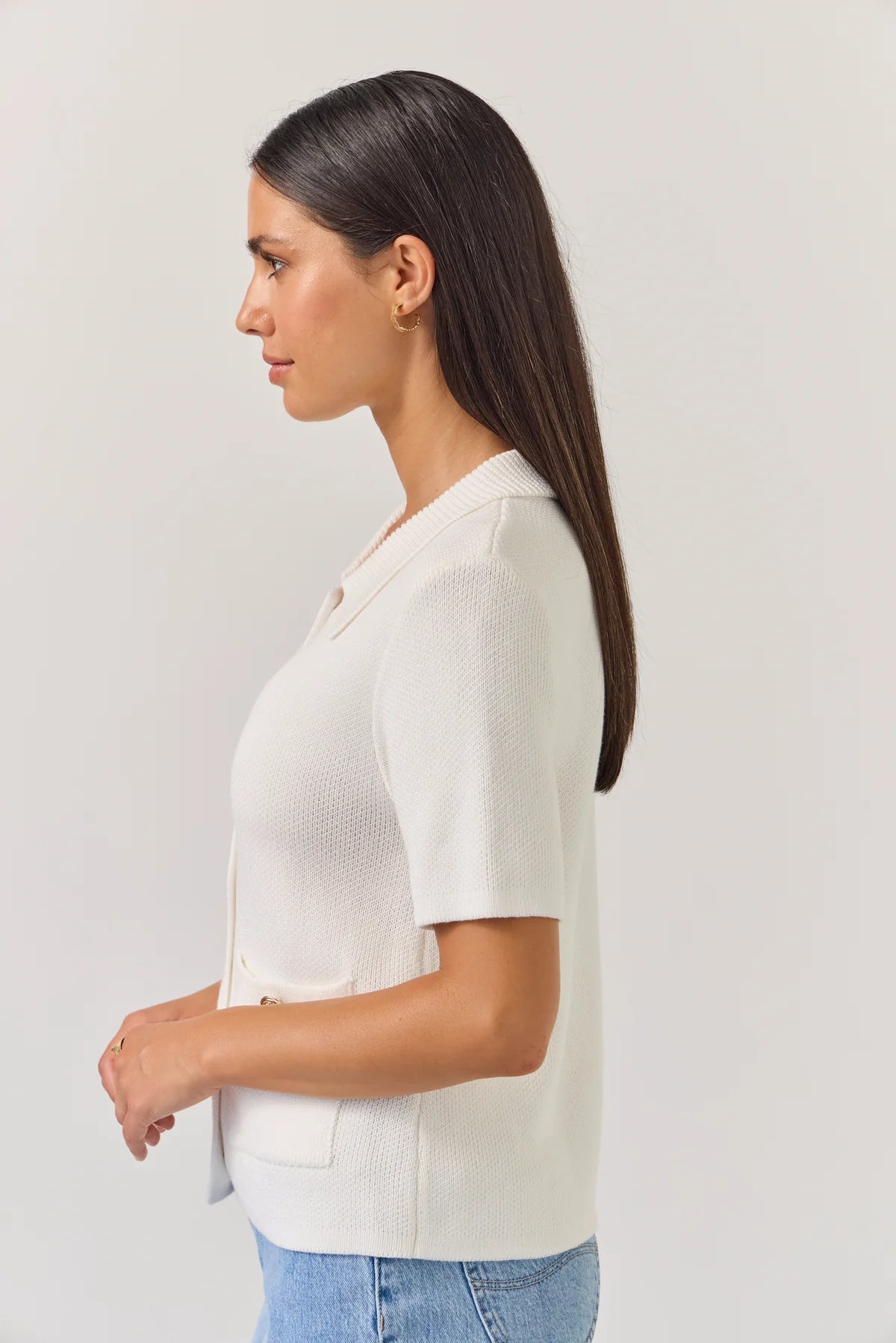 Inspired by classic Chanel, this waffle-knit has just the right amount of feminine charm. Wear with the buttons closed as a top, part open as you would a shirt, or completely unbuttoned for an easy layer over a cami or tank.